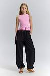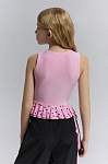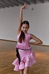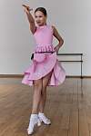 Конструкция и дизайн модели созданы для ярких сценических образов. Топ без рукавов имеет аккуратный округлый вырез горловины. Главным акцентом является эффектная многослойная волнистая баска с милым принтом "сердечки", которая добавляет образу игривости и объёма. Завершающая деталь — ниспадающая с талии контрастная кисточка, которая динамично развивается во время танца, подчёркивая каждое движение юной танцовщицы.