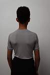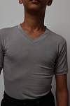 Конструкция модели создана для свободы движений. Футболка имеет практичный V-образный вырез горловины и короткие рукава, которые не стесняют плечевой пояс. Облегающий, но не сковывающий крой обеспечивает аккуратную посадку по фигуре, что особенно важно для отработки техничных элементов танца.