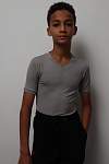 Детская спортивная футболка от бренда танцевальной одежды PRIMABELLA серого цвета выполнена из гипоаллергенного материала на основе натуральной бамбуковой ткани. Этот мягкий, дышащий и эластичный материал обеспечивает максимальный комфорт, идеально отводит влагу и сохраняет свежесть во время активных тренировок.