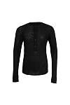 Легкий, свободный мужской черный лонгслив с планкой на брендированных пуговицах.