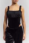 Черное боди от бренда PRIMABELLA сочетает в себе элегантность бархата и благородный блеск атласа, создавая идеальную основу для выступлений в латине, стандарте или на сцене. Модель выполнена из мягкого бархата, который эффектно ложится по фигуре, и дополнена верхней частью из гладкого атласного материала, переливающегося под светом софитов. Удобная застежка на кнопки по низу обеспечивает легкое надевание и комфорт во время длительного ношения.