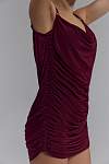 Откровенное женское платье-мини без рукавов на регулируемых бретелях от бренда PRIMABELLA для латино-американской программы танцев с открытой спиной и плечами. Выполнено из эластичной ткани в насыщенном бордовом цвете с благородным отливом, не сковывающей движения, которая легко стирается, не линяет и быстро сохнет. Идеальный крой с открытой спиной и драпировкой сделают Ваш образ необыкновенно загадочным. Платье без вшитых чашечек и лифа. Быть женственной и прекрасной — легко вместе с ПРИМАБЕЛЛА!