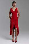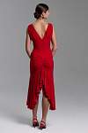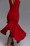 Дизайн создан для ярких сценических образов. Главным акцентом является эффектный драпирующийся волан, проходящий по всему подолу юбки. Эта деталь придает образу легкость, воздушность и динамику — во время танца волан красиво развивается, подчеркивая каждое движение и вращение. Ярко-красный цвет притягивает взгляды и делает образ незабываемым на паркете.