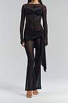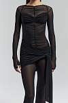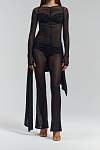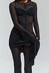 Экстравагантный комбинезон от бренда танцевальной одежды PRIMABELLA, созданный совместно с чемпионкой кубка мира по спортивным бальным танцам - Полиной Телешовой. Комбинезон из фирменной эластичной сетчатой прозрачной ткани оснащен вшитым топом с бесшовными чашечками, которые моделируют элегантные очертания груди и обеспечивают её поддержку, а так же вшитыми трусами. Комбинезон имеет застежку на спине в виде молнии и драпировку. Эффектный платок на бедрах из фирменной эластичной ткани придаст динамику во время танца. Удлиненные рукавами имеют отверстия под большой палец, что исключает их задирание.