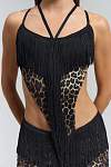 Откровенное леопардовое платье от бренда танцевальной одежды PRIMABELLA, созданное совместно с чемпионкой кубка мира по спортивным бальным танцам - Полиной Телешовой для самых смелых танцоров. Платье оснащено регулируемыми бретелями, эффектно перекрещивающимися на спине, обеспечивающими комфортную индивидуальную посадку по фигуре. Обилие пышной, плотной и густой бахромы придаёт неповторимую динамику во время танца. Вшитые бесшовные чашечки моделируют элегантные очертания и обеспечивают эффективную поддержку груди.