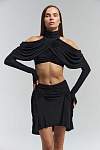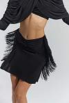 Женская черная юбка от бренда PRIMABELLA, созданная совместно с чемпионкой мира по спортивным бальным танцам - Полиной Телешовой. Юбка исключает перекручивания во время выполнения любых танцевальных фигур, так как оснащена вшитыми трусиками для комфорта и уверенности. Эффектная юбка имеет драпировки спереди и густую и пышную бахрому, что придаёт образу неповторимую динамику во время танца. Фирменный эластичный материал позволяет изделию превосходно сидеть по фигуре, не создавая излишней компрессии, благодаря своему высокому уровню эластичности.