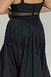 Черная макси юбка от бренда танцевальной одежды PRIMABELLA. Модель выполнена из фирменного эластичного материала, который обеспечивает идеальную посадку по фигуре и обладает высокой износостойкостью. Он легко стирается, не линяет и гарантированно сохраняет форму даже после множества стирок. Вшитая резинка на поясе дополняет комфортную посадку. Внутренний регилин поддерживает пышную форму юбки, создавая выразительный силуэт в движении. Главный акцент — асимметричная густая и пышная бахрома, которая начинается от пояса и придает каждому движению завораживающий визуальный объем. Этот элемент делает юбку идеальным выбором для страстных и энергичных выступлений.