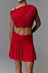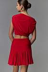 Дизайн делает акцент на динамике и цвете. Насыщенный ярко-красный оттенок привлекает внимание и добавляет образу энергии. Благодаря струящимся свойствам материала и свободному фасону, топ красиво движется в танце, подчеркивая пластику и создавая дополнительный визуальный объем. Модель отличается высокой практичностью: материал легко стирается, не линяет и быстро сохнет.