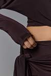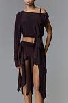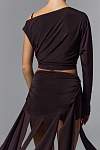 Коричневая юбка-платок, разработанная с учетом экспертного мнения Ксении Сибушевой, из фирменного струящегося материала, который мягко сидит по фигуре, создавая летящий силуэт. Практичные вшитые шортики обеспечивают комфорт и уверенность в самых динамичных движениях. Свободный крой «платок» добавляет образу легкости и драматизма, подчеркивая каждое вращение. Эта универсальная модель станет ярким акцентом для латины и идеально дополнит любой тренировочный или сценический образ.