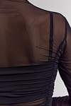 Черное платье от бренда PRIMABELLA создано для смелых, художественных образов для латины или сценических постановок. Модель полностью выполнена из эластичной прозрачной сетки, которая мягко облегает фигуру, создавая эффект воздушности и таинственности. Отсутствие вшитых трусиков и чашечек позволяет свободно комбинировать платье с любым нижним бельем или купальником, обеспечивая индивидуальный подход к образу.
