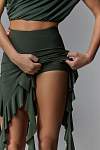 Женская мини юбка от бренда танцевальной одежды PRIMABELLA в модном цвете хаки и с пышными воланами по подолу, придающими динамику во время танца. Юбка превосходно сидит по фигуре благодаря фирменной эластичной ткани, которая легко стирается, не линяет и быстро сохнет. Юбка с эластичным поясом по талии имеет вшитые трусики, которые не позволят ей перекрутиться во время выполнения даже самых смелых танцевальных фигур!