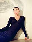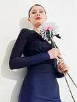 A classic dress with a V-neck neckline, a closed back and a delicate cutout on the back of the skirt. Long sleeves give a slim figure.