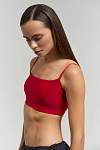 A red tank top from the PRIMABELLA dance clothing brand. Women's top with sewn seamless mesh-lined cups that model elegant outlines and provide effective breast support. Adjustable straps, an internal elastic band at the bottom and a branded elastic material that is easy to wash, does not fade and dries quickly. The top is worn over the head and has no fasteners.
